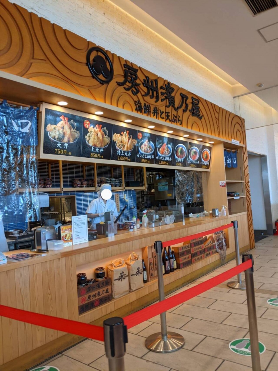 京葉道(下り線)パーキングエリア(Pasar幕張)のフードコートにある天丼と海鮮丼の専門店です。天丼は、リーズナブルな値段にもかかわらず、揚げたてサクサクの天ぷらがたっぷりと乗っていてボリュームがあって美味しいのでお薦めです。