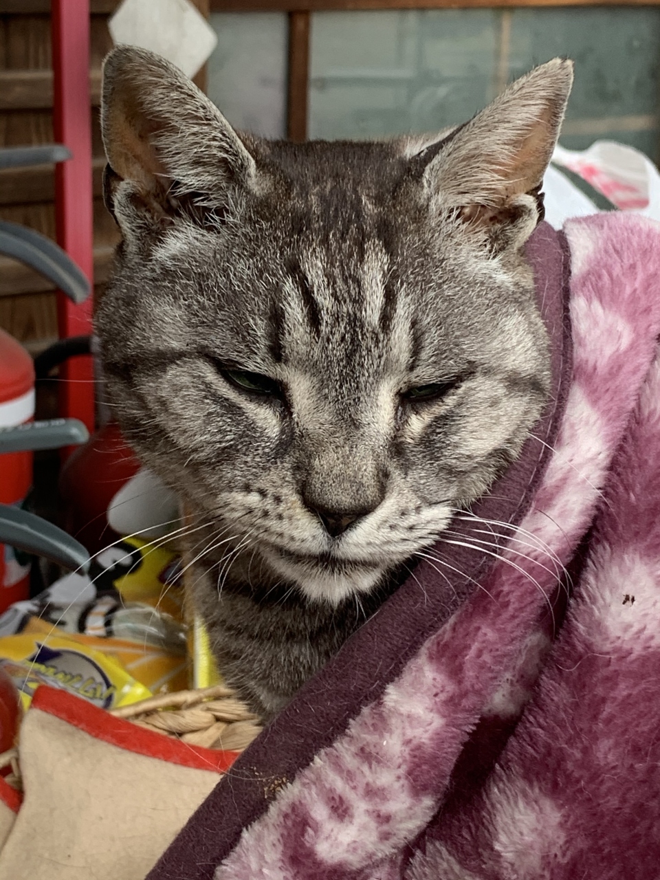 御朱印をもらおうと思った時、毛布の下に何かいる~!
