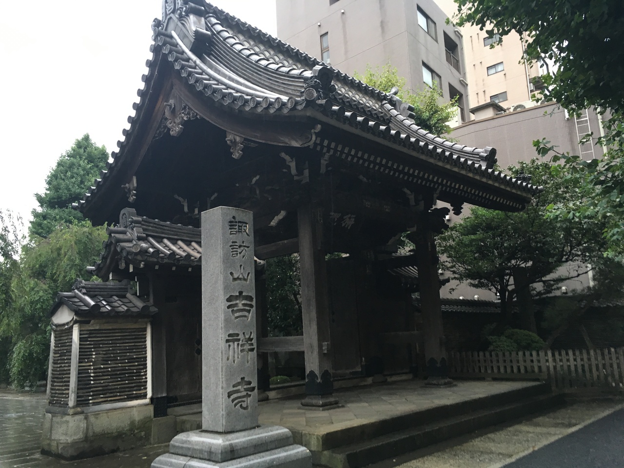 吉祥寺は、本駒込駅から徒歩7分のところにある曹洞宗の大きな禅寺です。木造瓦葺の薬医門が参拝者を迎えてくれます。本堂等は、鉄筋コンクリートのものであるが、境内の経蔵は、木造で歴史ある建物で文京区指定有形文化財となっています。境内には、大きな釈迦如来坐像(銅像)、二宮尊徳の墓石などがあります。この寺院は、1458年に太田道灌を開基、青巌周陽を開山として創建された寺院です。江戸時代は曹洞宗の梅檀林(駒沢大学の前身)で格式ある寺院であったとのことです。多くの諸大名、旗本の菩提寺であったとのことです。神社仏閣に興味がある方は参拝されては如何でしょうか。