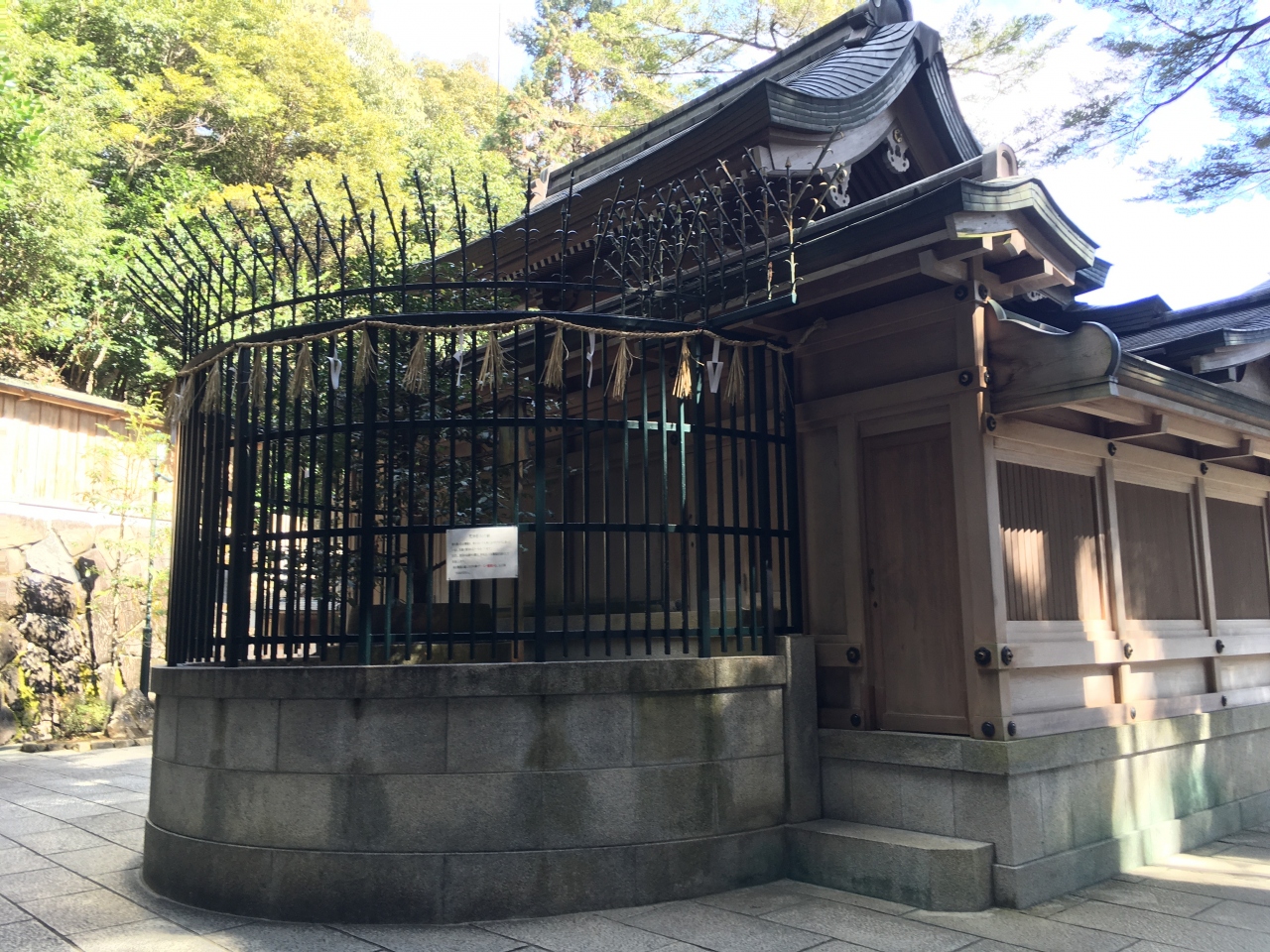 眷属堂の前通って奥へ進むと、護法堂の背後にあります。開創の際に荒神様がお姿を現わされたと伝わっています。いつの頃からか、榊の根元にお供えされた賽銭を持ち帰り、次回参詣した時に倍にして返すという風習があります。また、その賽銭を紙に包んで財布に入れておくとお小遣銭に不自由しない、御守りとして持っていると吉事があるともいわれています。