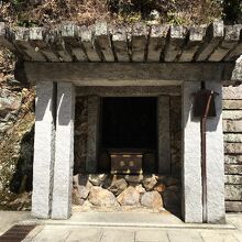 拝殿に向かって右側、火箸納所の隣にあります。岩壁をくりぬいて造られている珍しい祠です。修験道の開祖とされる「役行者」をお祀りしています。修験によって得た力をもって、病気や災難等を取り除くと言われています。役行者御遠忌(没後)1100年の1799年に、光格天皇が京都の聖護院に勅使を遣わして、神変大菩薩の諡を贈りました。