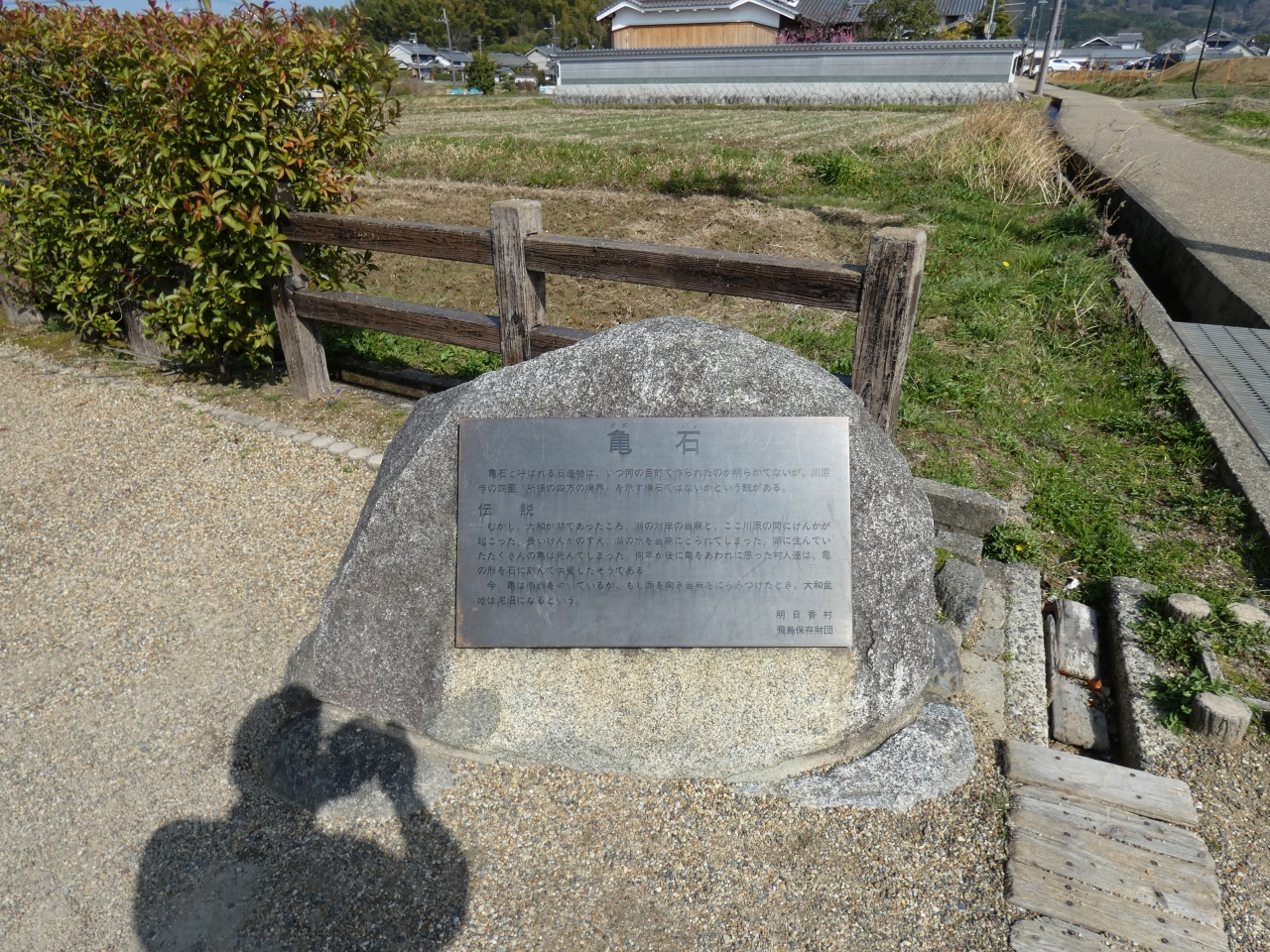 古代史の里「飛鳥」の川原寺跡や橘寺の西側にある謎の石造物。155号線の一本南側の民家前にあります。長さ3.6m・幅2.1m・高さ1.8mの巨大な花崗岩で下の方が亀の顔に似ていることから亀石と呼ばれるようです。飛鳥には面白い石造物が多く存在します。信仰の対象だったのでしょうか。