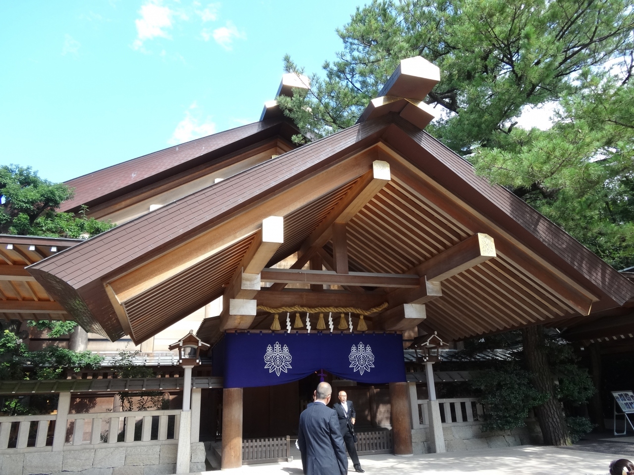 平成21年に新たに建造されたもので割と新しめの建物です。本殿の向かって右側にある建物で、元日にはその名の通りに、神楽が奉納されます。前面に突き出た立派な屋根が印象的で、さすがに有名な神社なので神楽殿の建物自体もとても立派な建造物です。