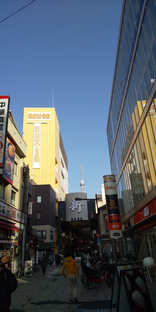 仲見世に直角に交差しているように見えるアーケード商店街で観光名所の浅草にある。アーケード入り口から向こうに東京スカイツリーを眺める事ができるので、方向がスカイツリーに向いているのがわかる。地下鉄の駅から近い