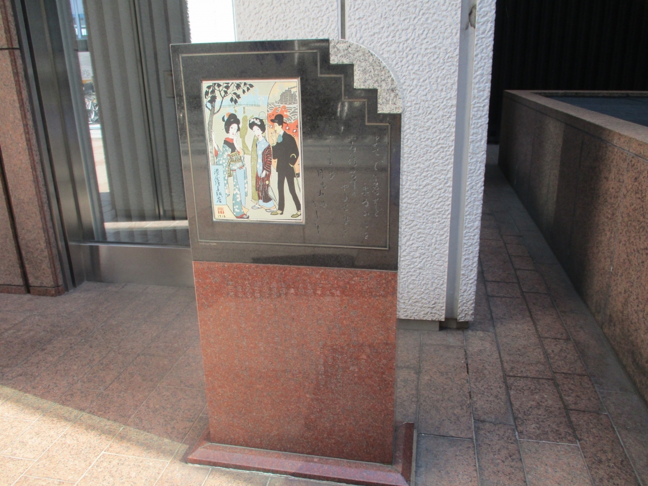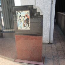 東京駅から歩いて数分、呉服橋交差点のそばのみずほ信託銀行の前にカラフルな夢二のイラストのついた碑があります。大正時代にこのあたりに夢二自らデザインした、版画や封筒、手ぬぐいなどのグッズを売る「港屋」というお店を開いていたそうです。当時どんな雰囲気のお店だったのか知りたいと思いました。