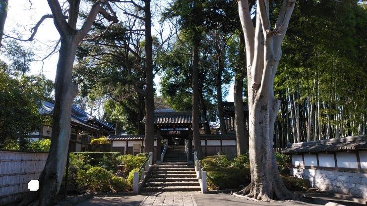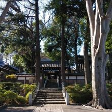 境内入口は住宅街の中にあるが、参道が長く奥に進むと山門横に竹林や森が見えてくる。