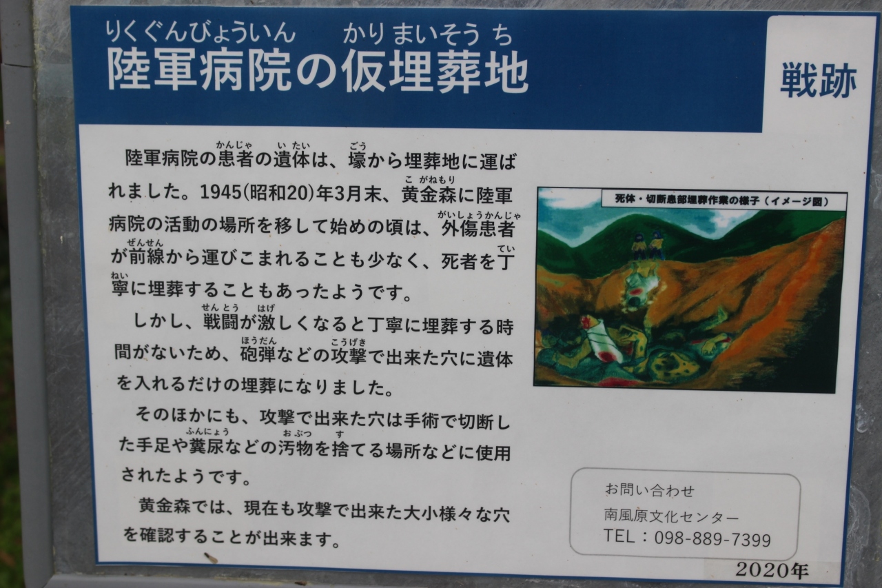 南風原町の黄金森一帯は沖縄戦のときに陸軍病院の壕のあったところです。