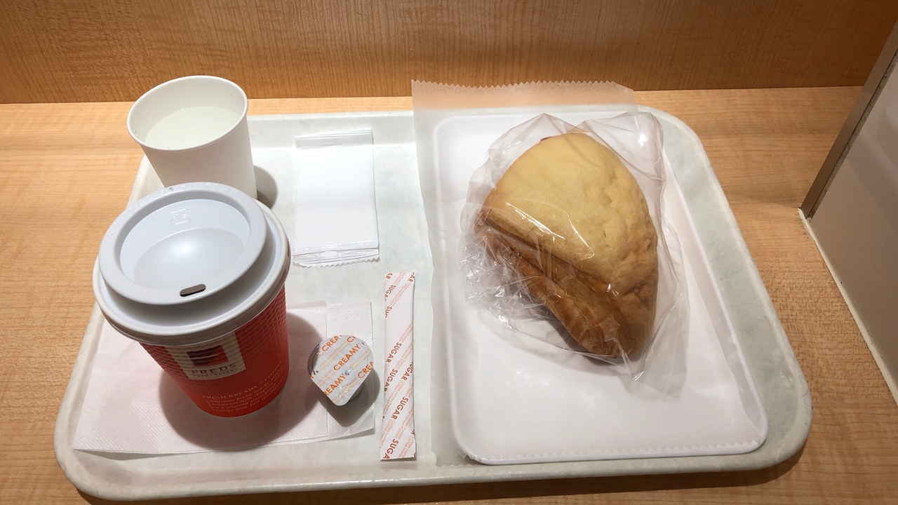 フレッズカフェは、阪急が運営するカフェ・ベーカリーです。梅田店は、2F改札口を出た場所・定期券売り場の隣にあります。イートインスペースも20席ほどあります。モーニング、ランチ、夜など、時間帯ごとにパンとドリンクのお得なセットもあります。