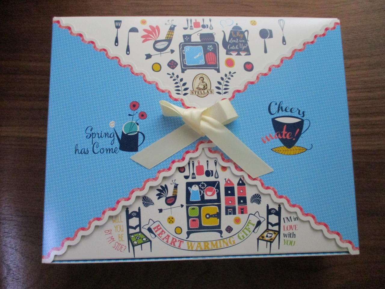 ステラおばさんのクッキーのお店、通るとおいしそうとつい眺めてしまいます。こちらの箱入り詰め合わせギフトをもらいました。チョコチップ・オールドファッションシュガー・アップルカスタード・ベリーベリーハート・ショコラオレンジ・チョコココナッツといろんな味が楽しめます。食べるのが楽しみです。