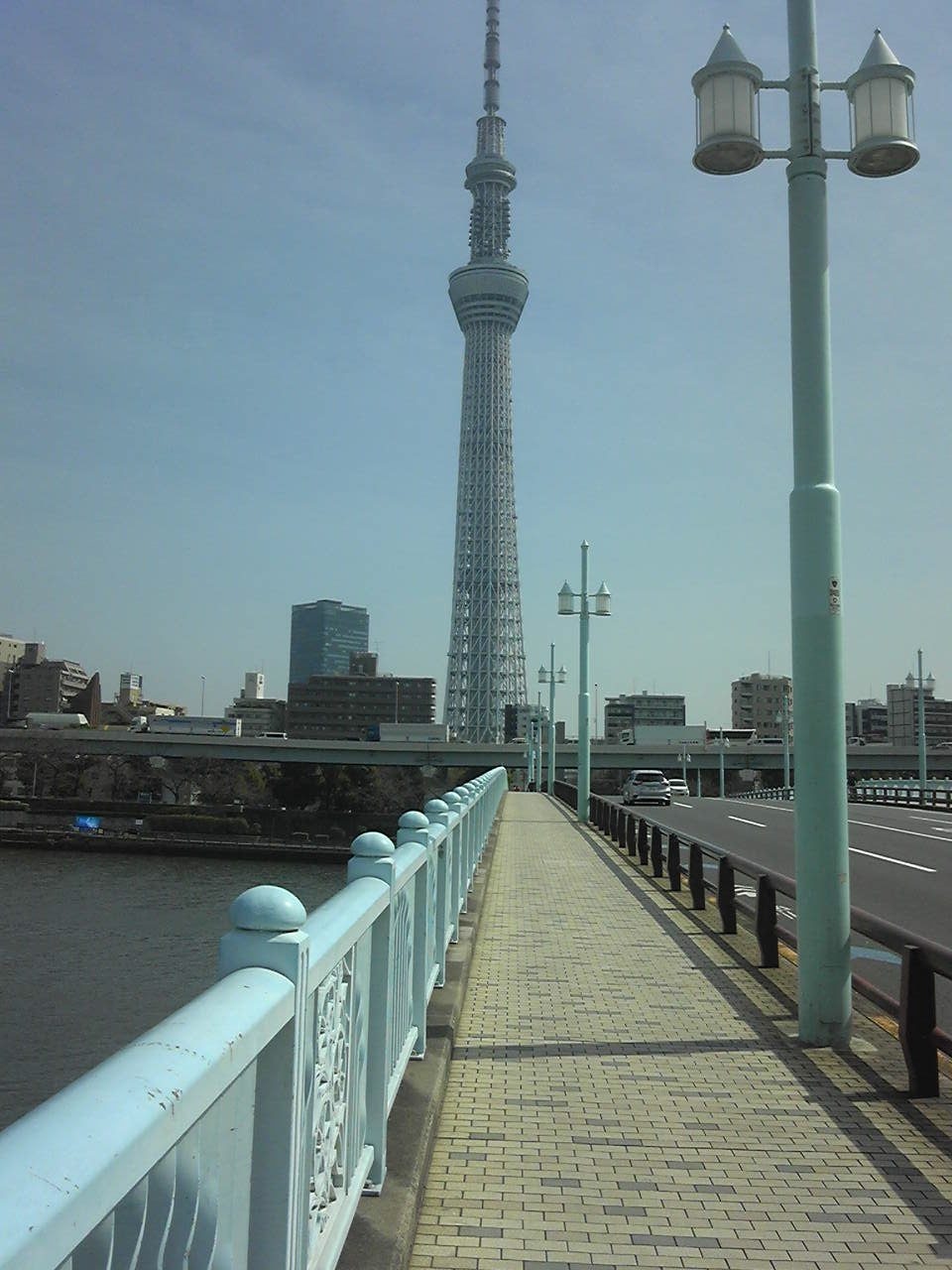日本一高いタワー、東京スカイツリーは、浅草周辺なら、かなり近くにきれいに見えますが、その中でも、この言問橋からの眺めは最高です。
