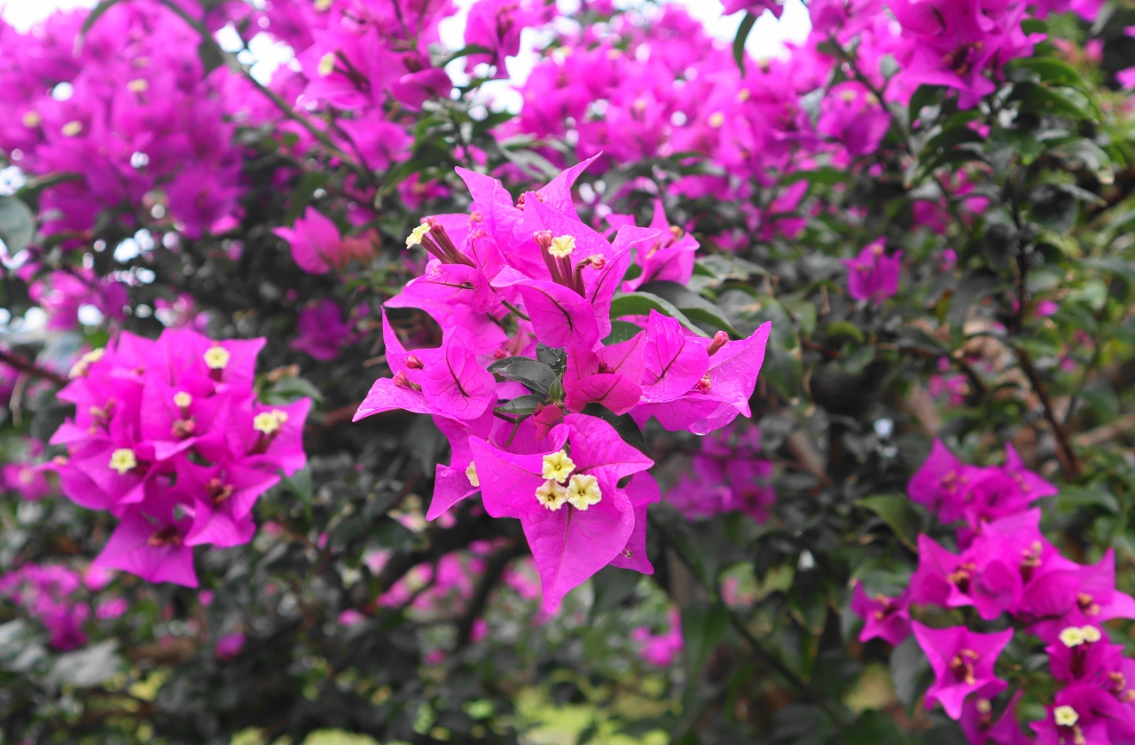 ブーゲンビリアやハイビスカス、南国ムード満点。
