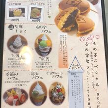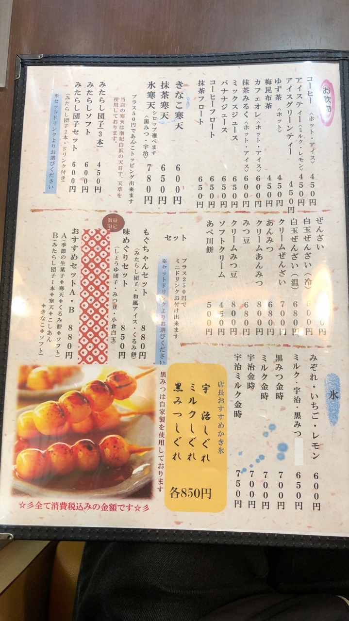 難波駅の地下街「NAMBAなんなん」にある甘味処です。くるみ餅や黒胡麻しるこなど珍しいメニューもあります。今回は、おすすめセットA・880円を食べました。ソフトクリームくるみ餅と季節の生菓子(いちご大福)がセットになっています。