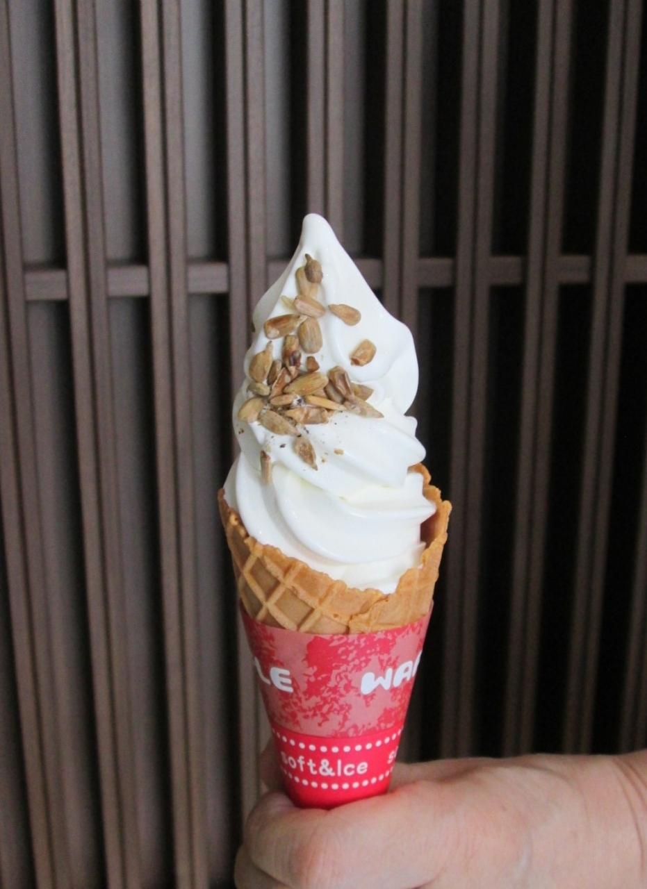 ひまわりで有名なので「ひまわりソフト」を頂きましたが、ひまわりの種が乗っているだけでした。