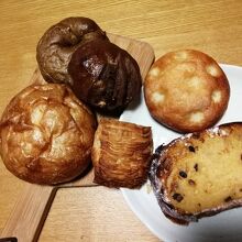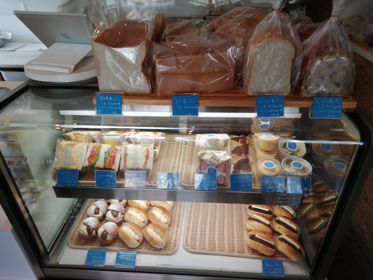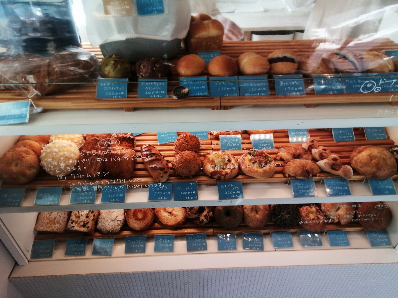 とある土曜日、開店15分前に行き一番乗りでしたが開店時間の11:00には10人ほどの行列ができていました。販売方法は一対一の対面式で一人つづ購入します。ケースに入っているサンプルから選ぶとパンを一つ一つ紙袋に入れてくれます。そんなスタイルだとはつゆ知らず。初来店だったのでもっとじっくり吟味して選びたかったのですが、後ろに10人も並んでいると思うとプレッシャーでやや不本意なチョイスとなってしまいました。