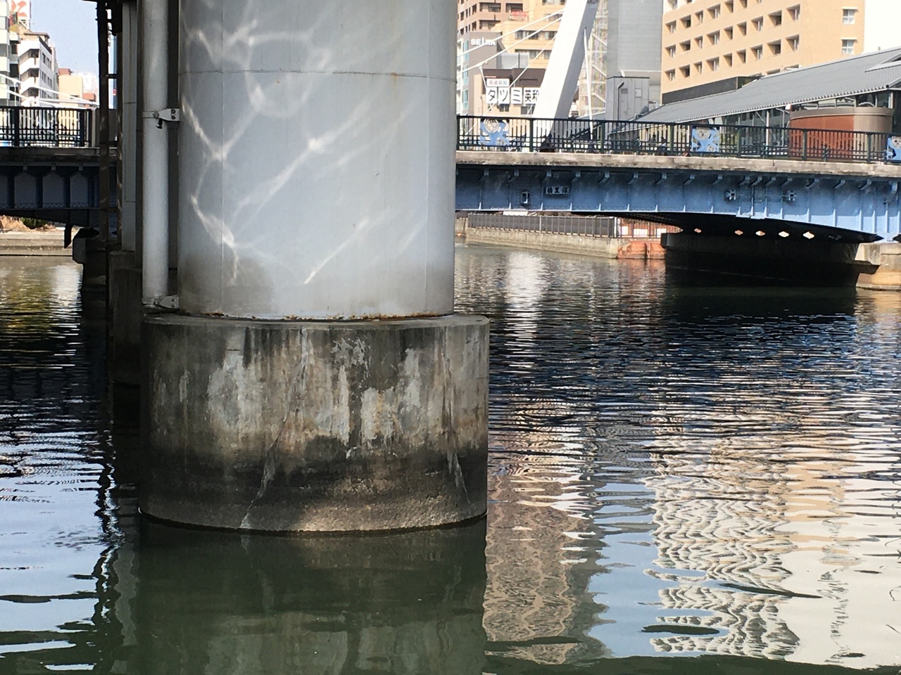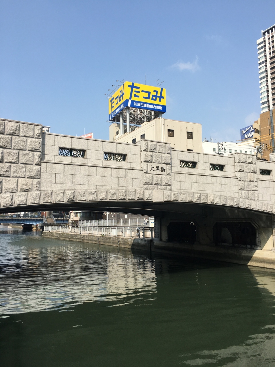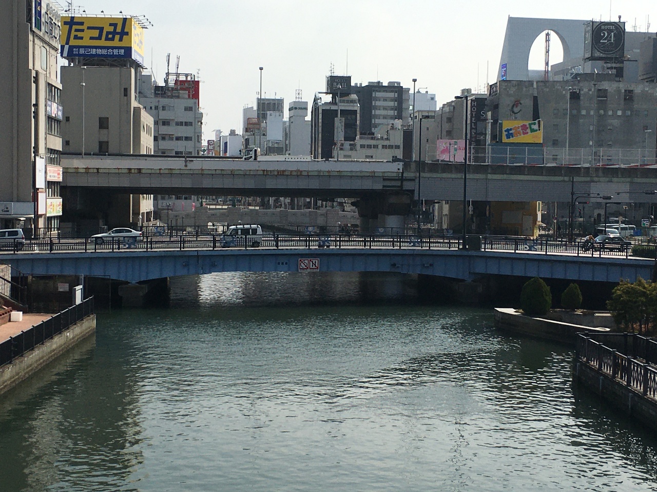 短めの幅の川で道頓堀等の繁華街を流れ、川の上にはいくつもの橋が掛かっていて川幅は短く、左右にはビルが連なっていましたが、川沿いを歩くことが出来る部分もあります。川の水は濁っていますが周りの景色が良いです。