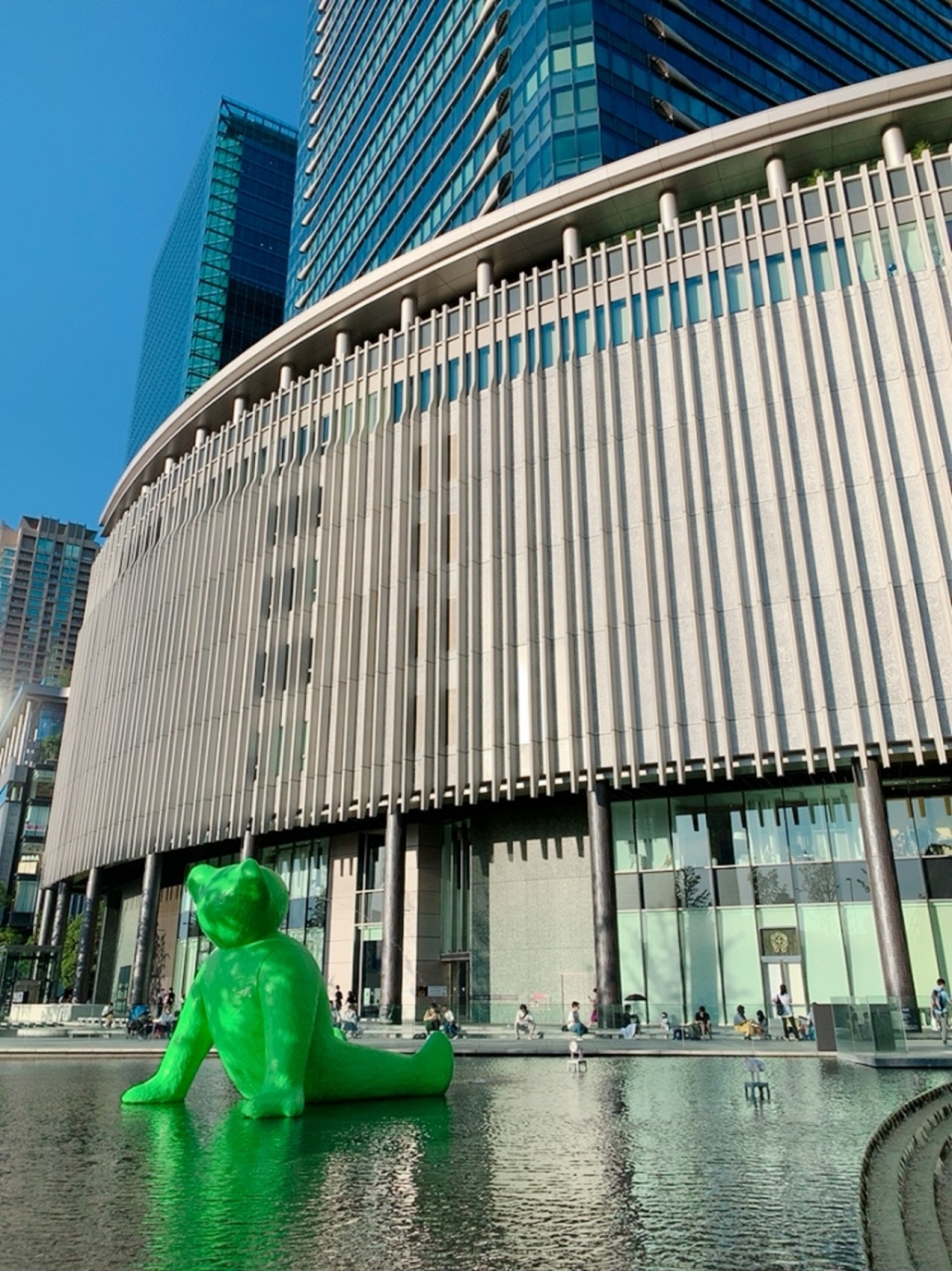 個人的には、お天気の良い日に、外の噴水エリアを歩くのが好きです。 緑色のクマさんの口から水が噴き出す、噴水になっていてめっちゃ可愛いです!