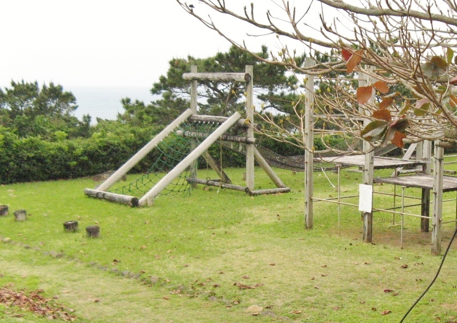 リゾートホテル久米アイランドの南西の山手に位置しています。公園の周囲は原生林に囲まれた文字通り広い森林公園で、ブランコや滑り台など子供が遊べる遊具もあり芝生が広がる広場からは青く澄んだ海が一望できます。観光客があまり行くようなところではないようで滞在中は貸し切り状態でした。