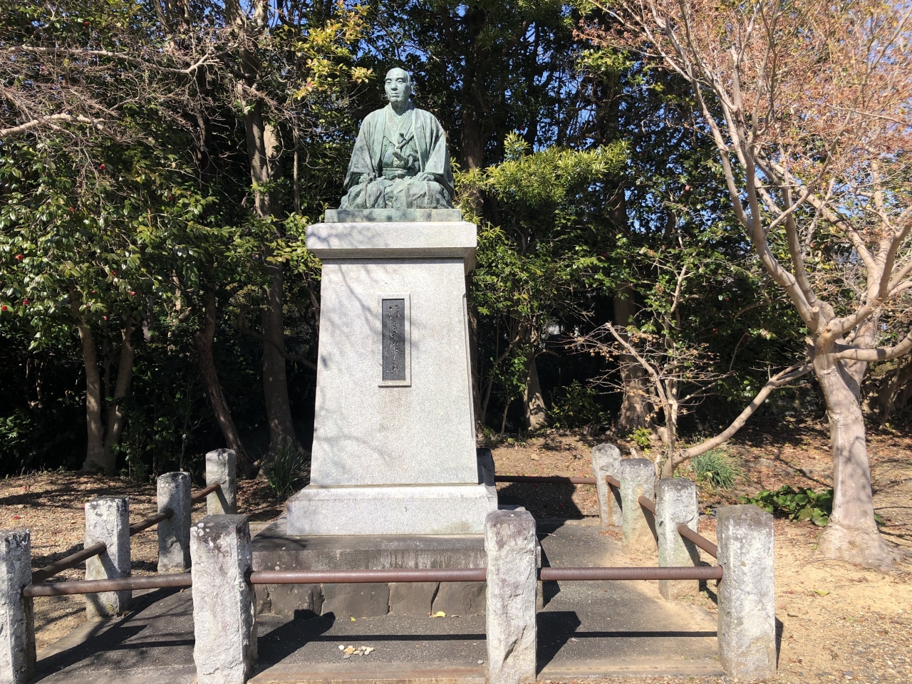 渥美半島田原市は、幕末の名士・渡辺崋山が晩年蟄居させられていた地。その場所に幽居跡を復元して、崋山をテーマにした公園として整備したのが池ノ原公園です。復元幽居跡の他、崋山の銅像、東郷平八郎書の「崋山玉砕の地」碑などがあります。公園の隣には崋山を祀る崋山神社や田原城址公園もあります。崋山をテーマに散策するのもいいですよ。