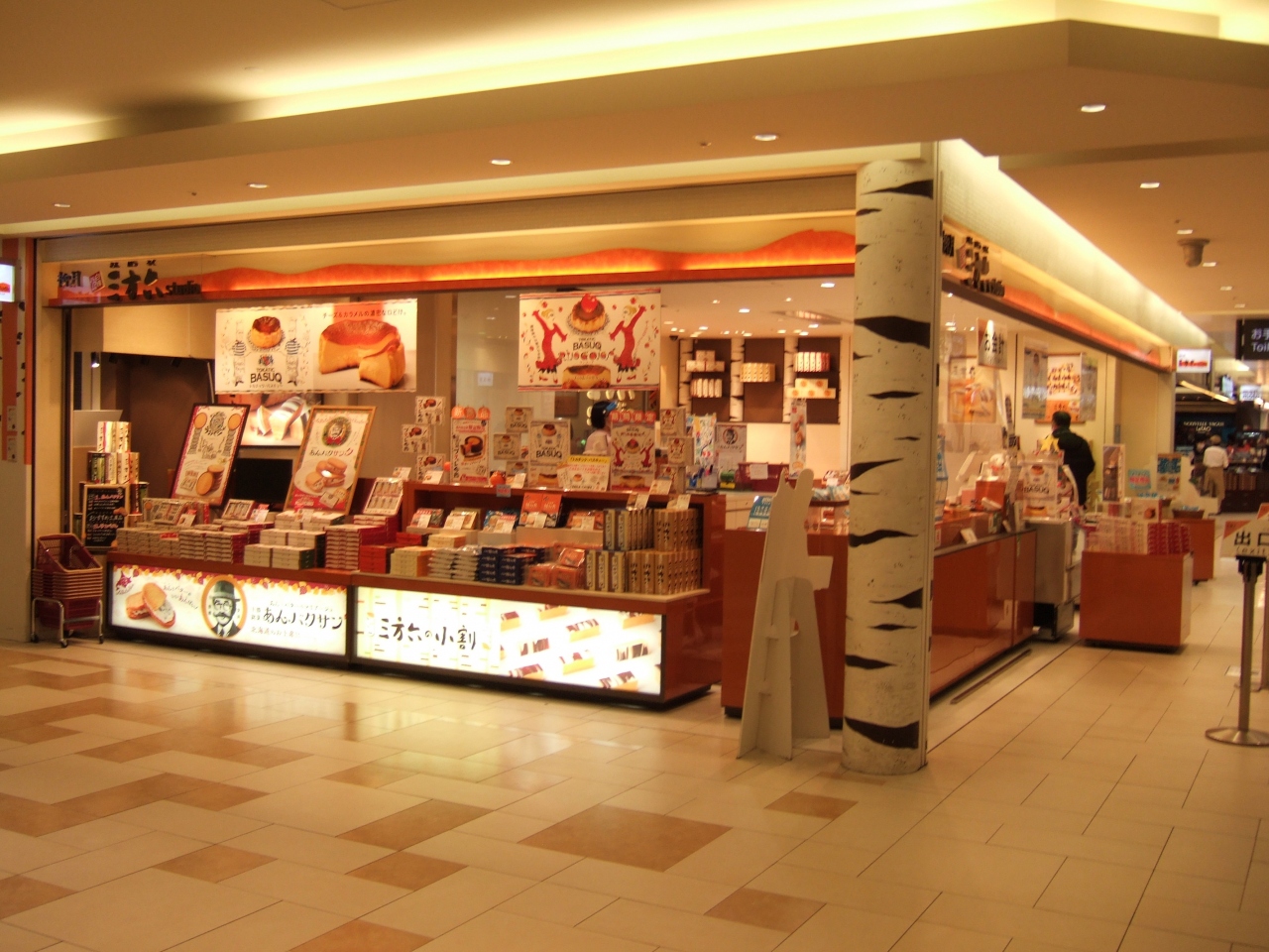 新千歳空港国内線ターミナルビルの2階、国際線に向かう中央の通路沿いにある柳月のお店。三方六スタジオという名前が付けられていますが、実演販売をしているわけではありません。三方六以外にも柳月のお菓子は一通りそろっており、買いやすく陳列されています。