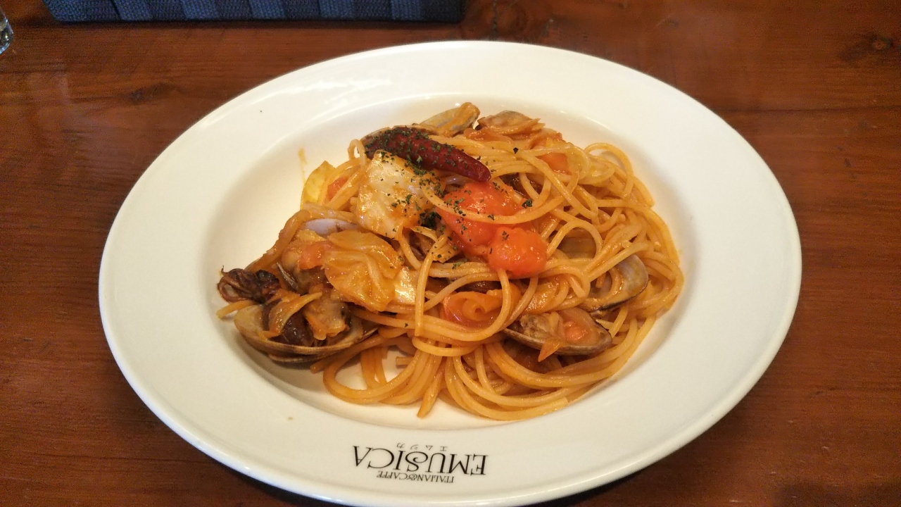 パスタはキャベツの甘みが、自分にはちょっと乗りすぎていたので、ちょっと微妙でしたが、ホタルイカとトマトソースの関係で言うと美味しかったです。パスタは丸の細めでソースが絡みやすいヤツでしたね。