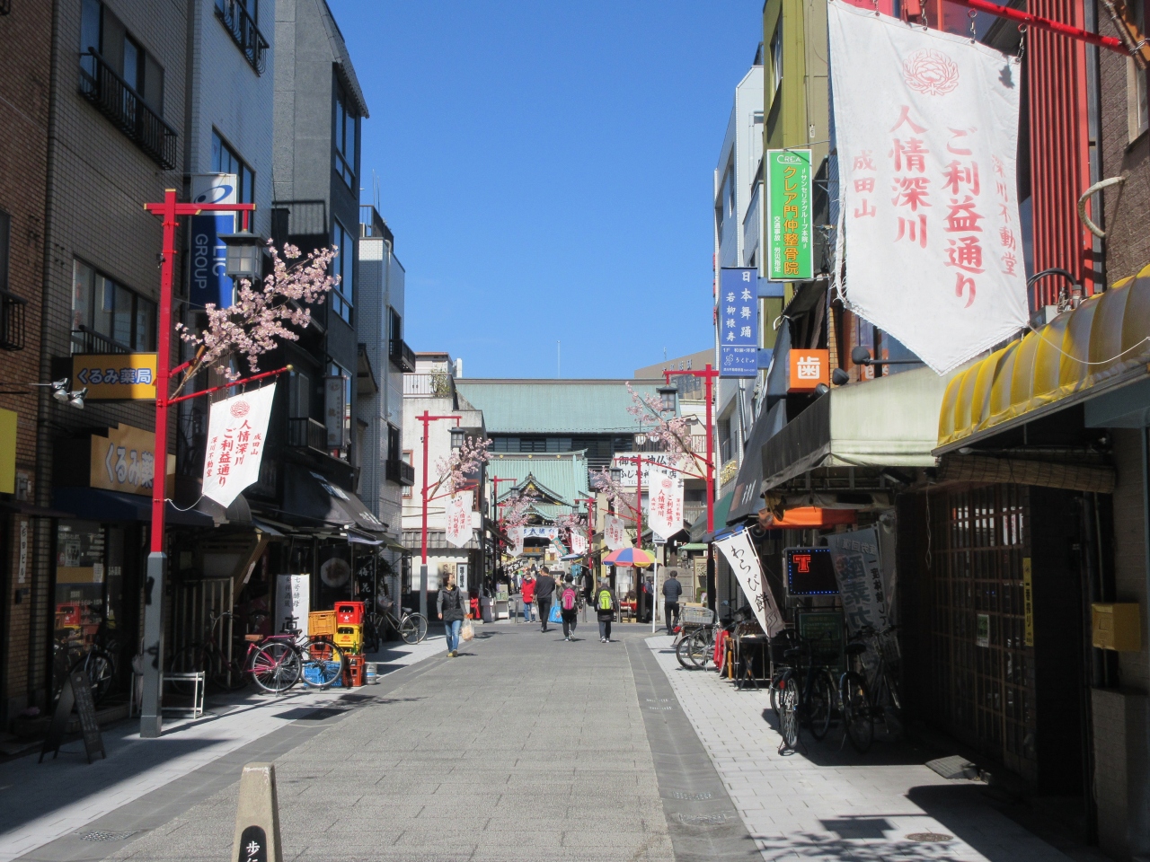 東西線門前仲町駅出口1の前から深川不動堂へ向かう参道です。和菓子屋、カフェ、せんべい屋、レストラン、食事処、マッサージ店などが並んでいます。訪れた15日は縁日でした。永代通りの歩道内に花を売る出店がありましたが、人情ご利益通りは縁日とは思えないくらい普通の人出でした。伊勢屋で和菓子とおにぎりを、深川華でこわれせんべいを買い、近為で昼食をとりました。どこも静かでした。コロナが収束し、以前のような賑わいが戻ることを願わずにはいられませんでした。