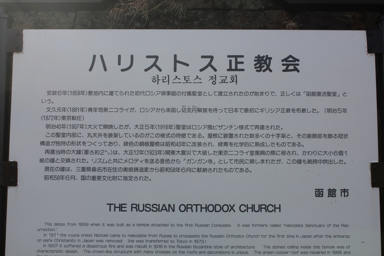 函館山の山麓にあるギリシャ正教会の聖堂で、国の重要文化財に指定されている美しい建物です。