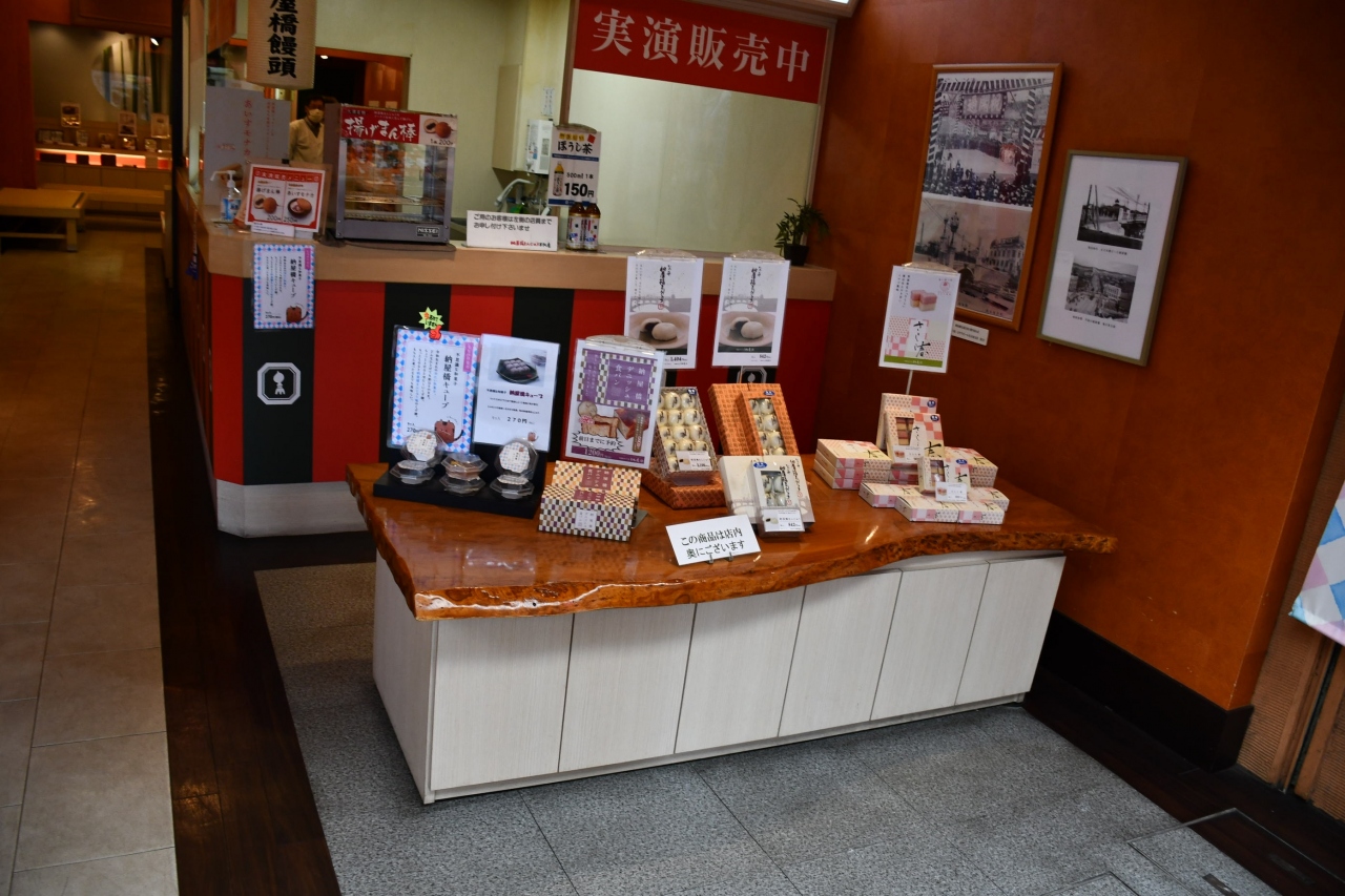 大須商店街の中にある和菓子屋さんです。この商店街は、大須の観音さんと万松寺さんの門前町として広がったのでしょうが、人通りが多くて賑やかです。店の奥に床几があって、そこに腰掛けて氷り最中をいただきました。