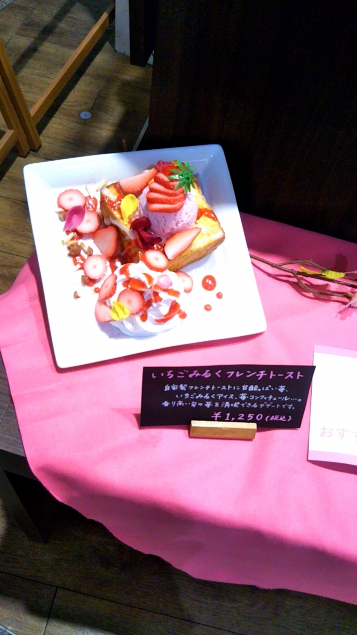 ストロベリーを使用したパフェやフレンチトーストなどがあり、どれも美味しそうです。