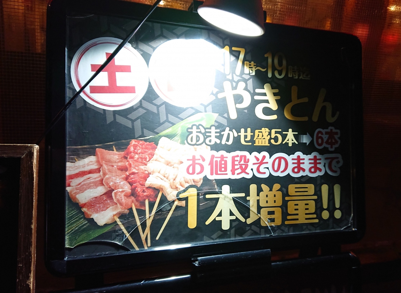 土曜日はお任せ5本串が6本ななるサービスがある。出張族が居ない土曜日ならではのサービスだろう。