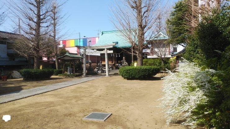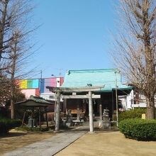 通りに面して丈夫そうな鳥居が印象的。境内は環状七号線に沿って伸びており、コンパクトな印象。本殿も木造で小さな建物だった。