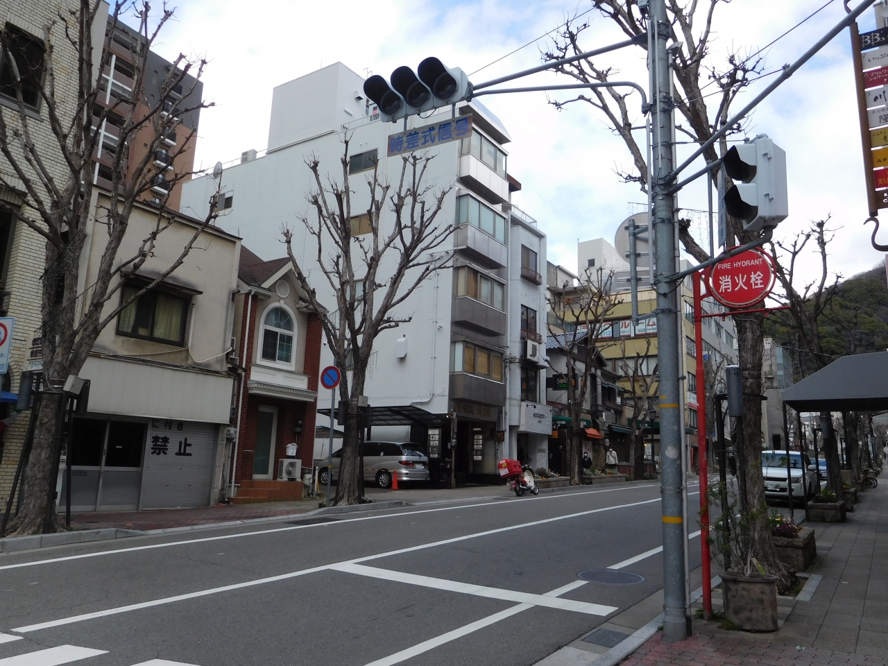 三宮駅の北側にある比較的大きな車道「中山手通」の、ピーナッツホテルのすぐ横から、「北野通り」までの間の坂道が「北野坂」です。歩道沿いには「オリーブの木」が植えられていて、とても綺麗に整備された道になっていました。北野坂はゆるやかな坂道だったので、周囲の景色を楽しみながらゆっくりと歩く事が出来ました。
