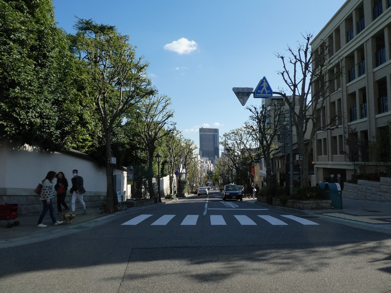 阪急三宮駅から異人館街に向かってまっすぐ伸びる坂道で、昔は登るにつれて振り返ると港と海が見えたのですが、2021年完成予定の阪急三宮の駅ビルが正面にででーんと見えるようになり、これはこれできれいといえばきれいなのですが、海の方の景色が遮られました。この点がちょっと残念です。