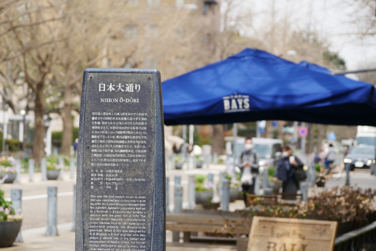 JR根岸線関内から横浜公園を抜けると、横浜港象の鼻パークまで一直線の日本大通り