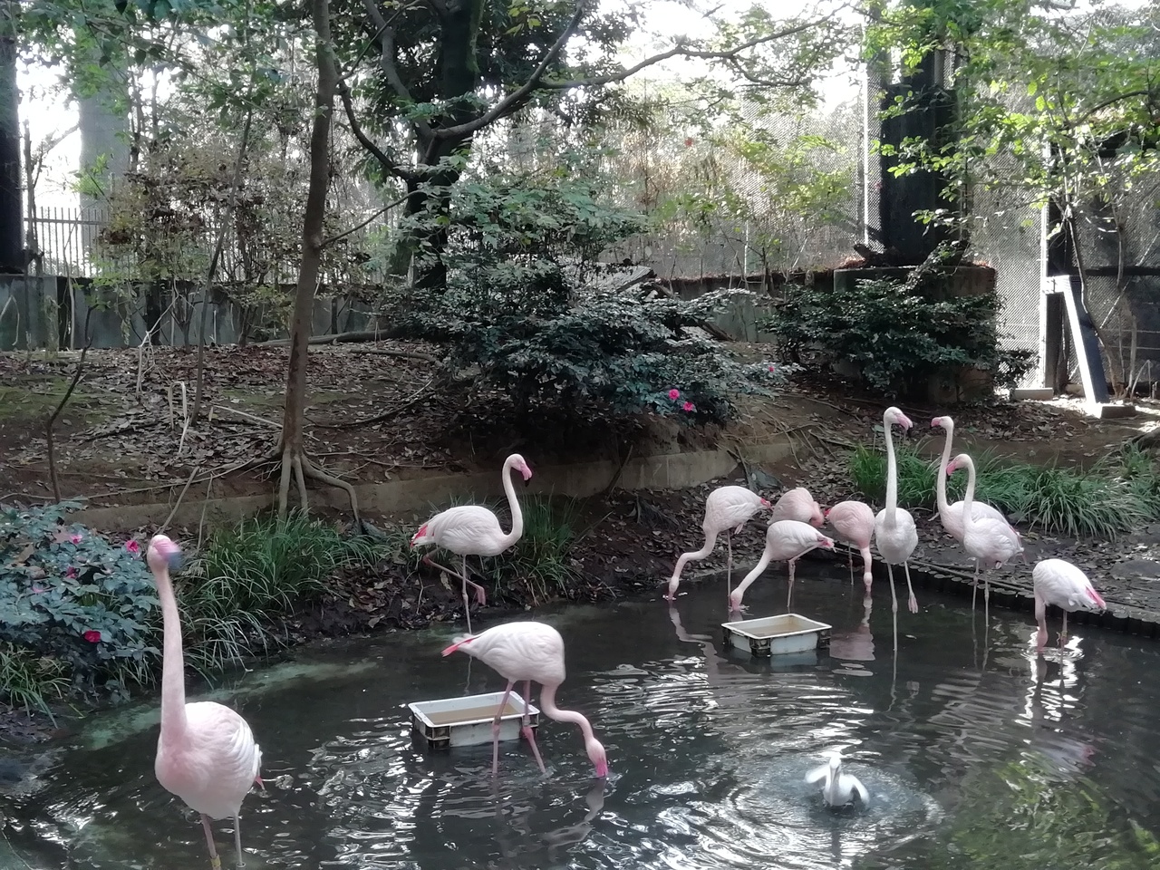 鳥がいるところは、フラミンゴがいてキレイ。他の鳥も放し飼いで飛んでいるので、近くで観察できます。