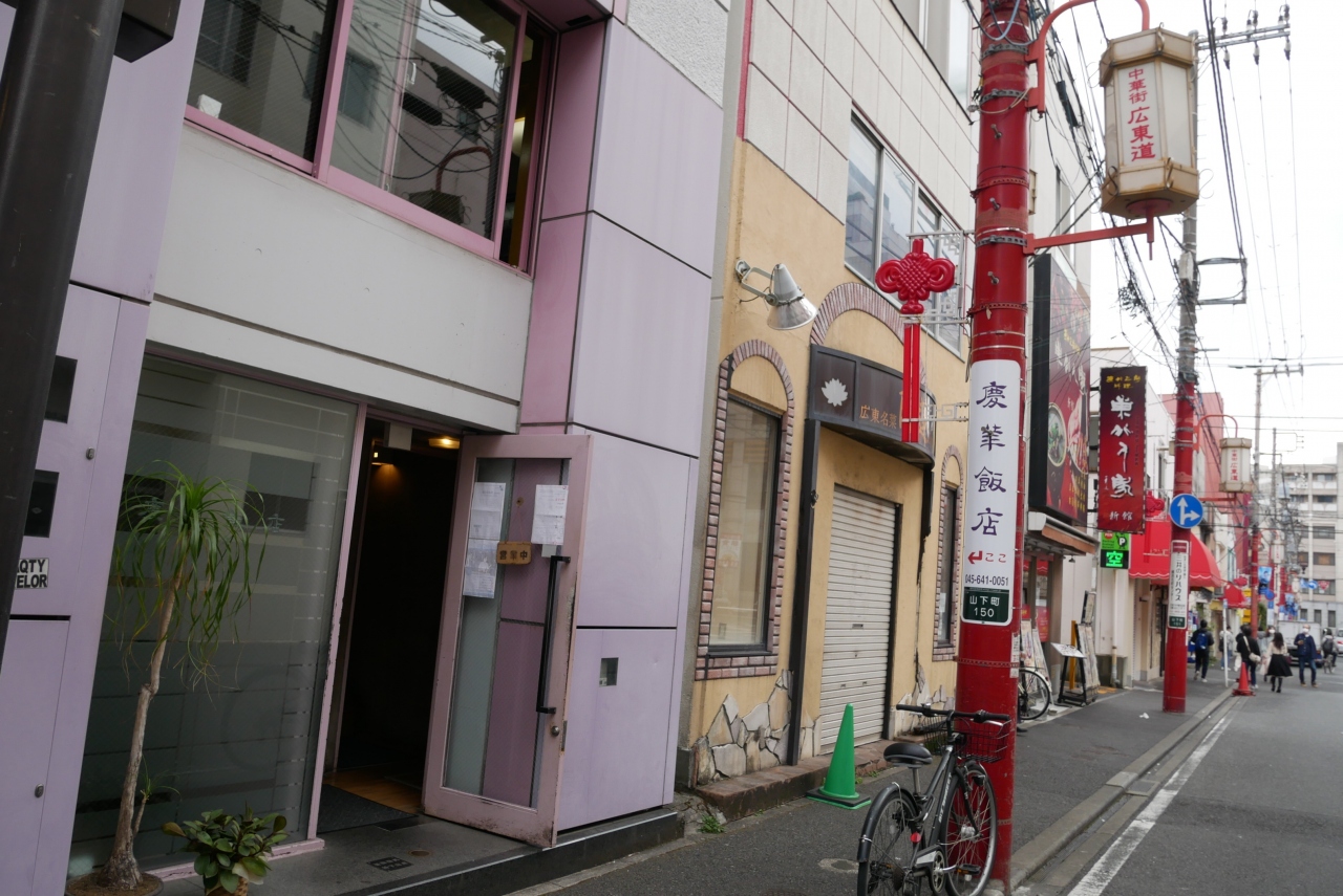 中華街のはずれ広東道にある慶華飯店、山東の隣だけど店らしくない構えでわかならない