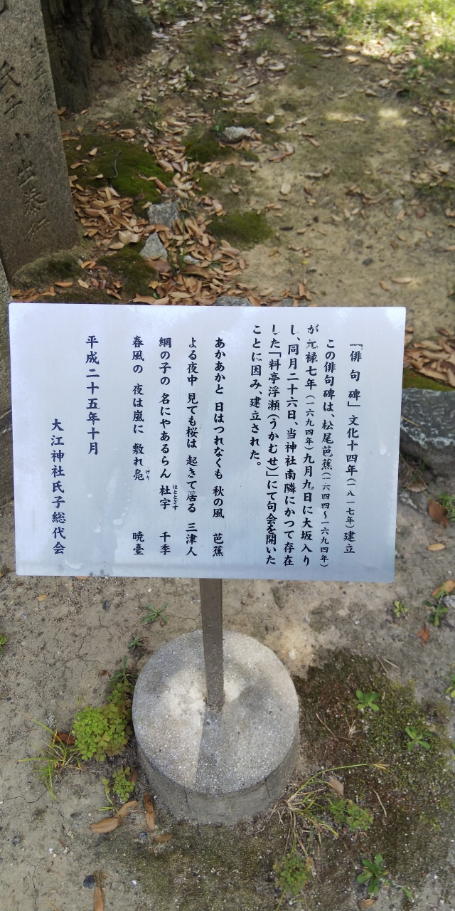 大江神社の境内にあり、文化14年(1817年)に建立されたものです。句碑の近くに案内板がありました。