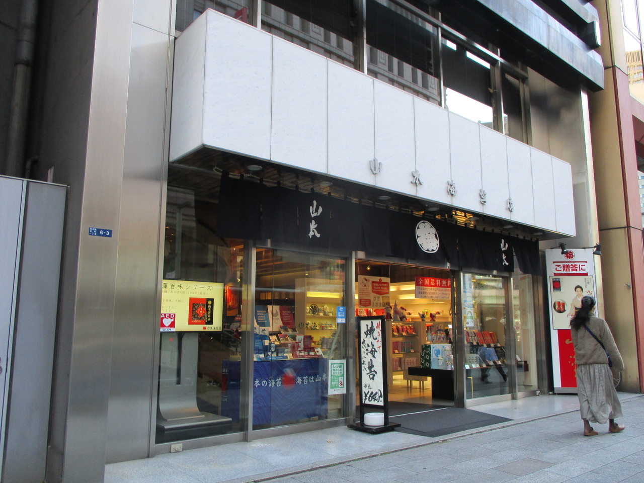 日本橋三越のすぐ向かいにありました。デパートの地下の食料品売り場に行くと必ずと言っていいほどあり、ご進物に使われることが多いです。創業以来変わらず海苔専門に営業されているということですが、いつまでも続いて欲しいお店です。