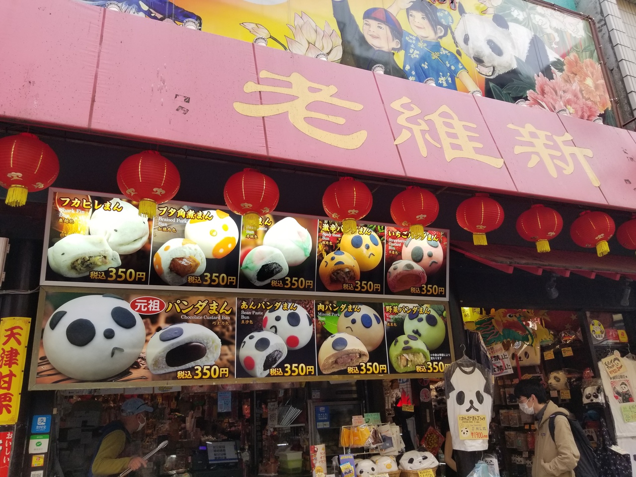 パンダの顔の形をした豚まんなどを店頭で販売している。値段も納得だ。