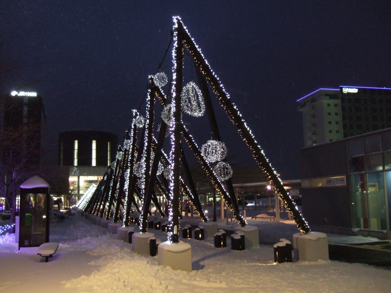 冬になると函館市内のあちこちでイルミネーションを点灯しているようです。街に出なくても駅前にもきれいなイルミネーションが輝いており、雪の中をあまり歩かなくても、手軽にイルミネーションを楽しむことができるのは助かります。