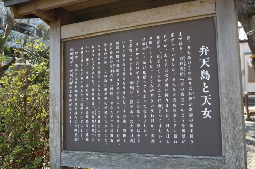 弁天島駅を降りて道路沿いに歩くとこちらの神社がありました。全国いろいろなところで、天女・羽衣伝説があるようですが、こちらの神社でも。弁天島の成り立ちも含めて書かれていました。海上・交通・商売繁盛など諸願成就などのご利益があるようです。