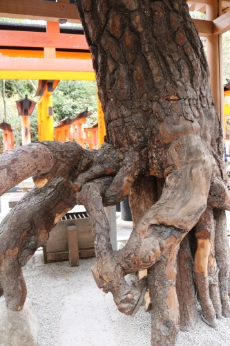 関西の雨予報、まだ雨は降りだしていなかったのですが関西地方は雨の予報ゆえ、お山巡りは断念しました。ここ数年はインバウンドで日本人以外の人が多かったのですが、今回はこちら以外の京都も含めて日本人がほとんどです。根上がりの松をくぐってきました。