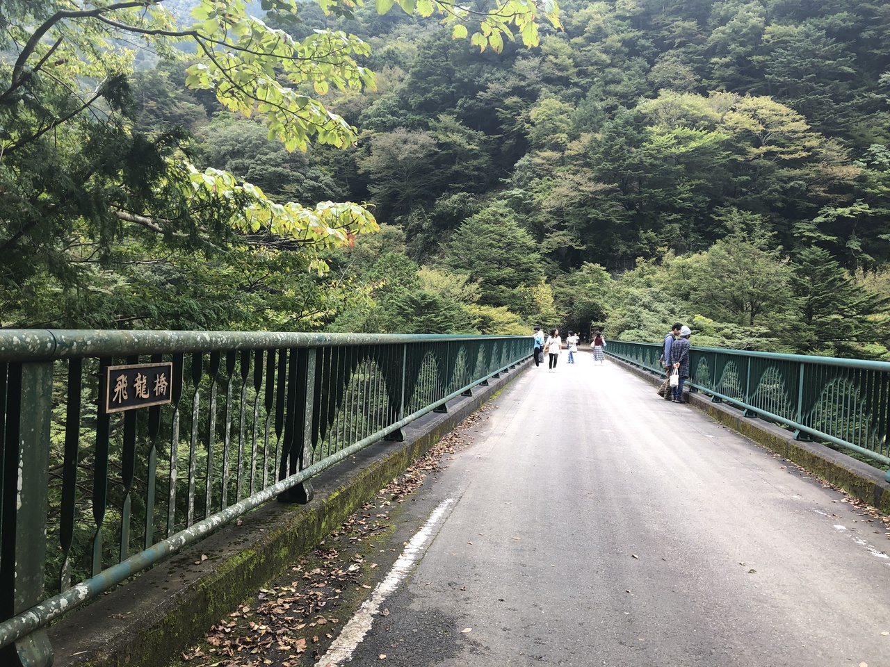 飛龍橋は、寸又峡に架かる長さ72mのアーチ型の橋です。夢の吊り橋と異なり強固な橋です。この橋は昔、森林鉄道のトロッコが通った橋とのことです。夢の吊り橋が一方通行ですので、この橋を渡り戻ることになりました。この橋に上からの景色はgoodです。遠くに夢の吊り橋を見ることもできます。