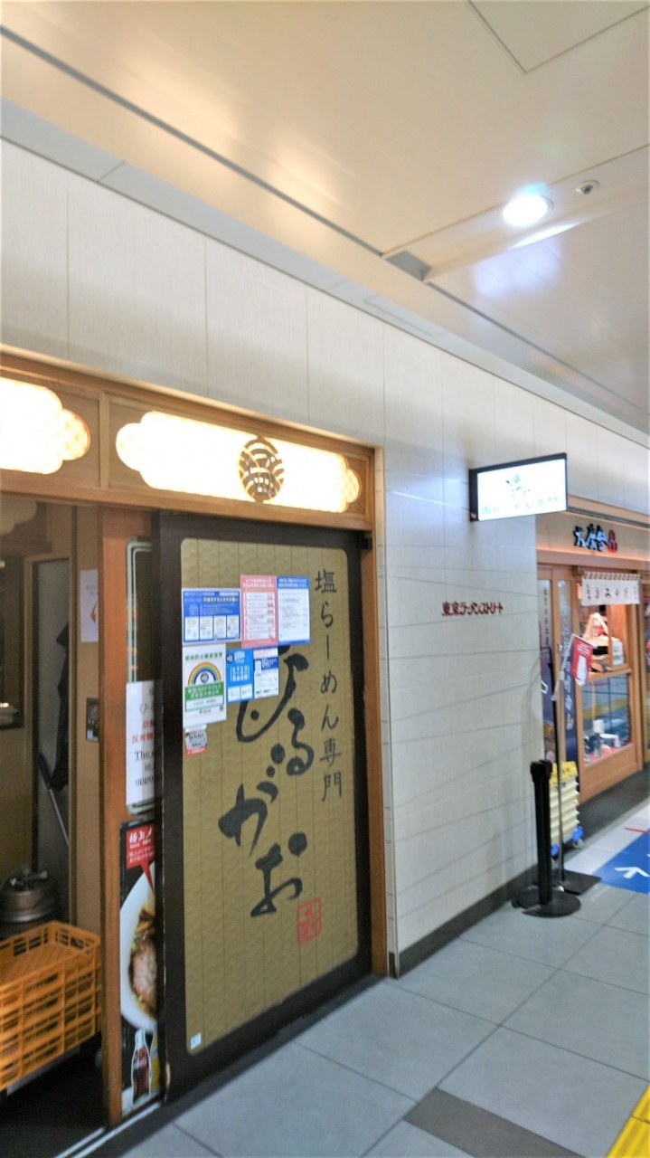 東京駅八重洲地下街の南エリアにある東京ラーメンストリート内にある塩ラーメンの店。いつもは行列するこの東京ラーメンストリートの店は緊急事態宣言になってからはあまり混んでない。混んでいることを見込んで来たが、ちょっと拍子抜けした。