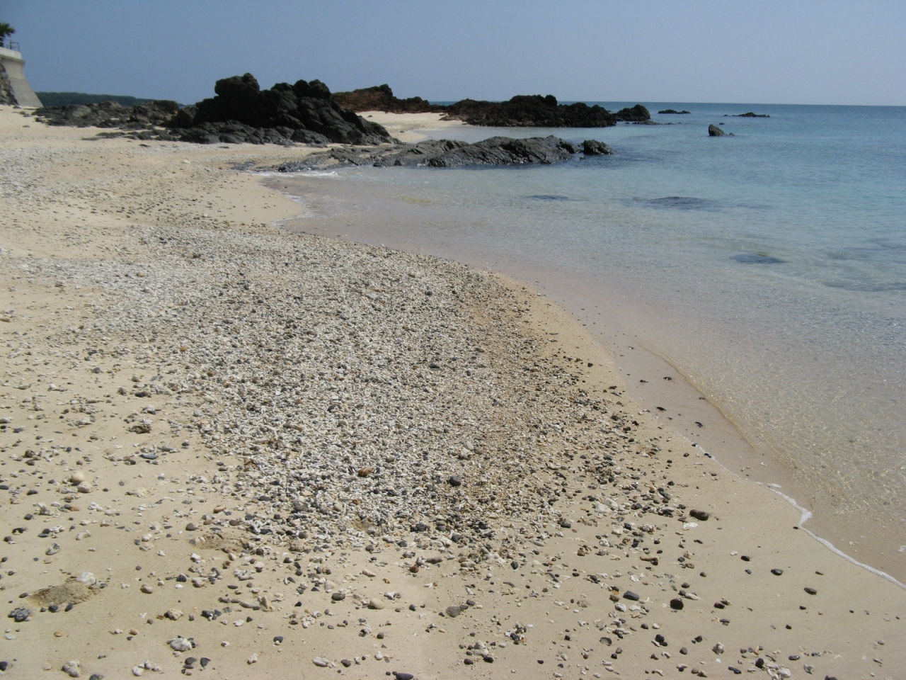 白い砂浜が2kmほども続く広いビーチ