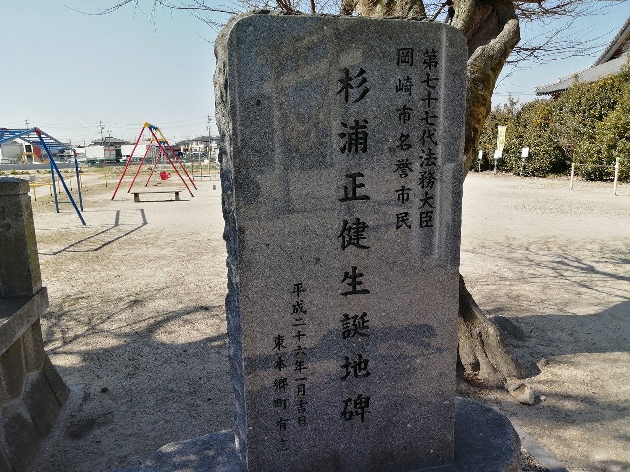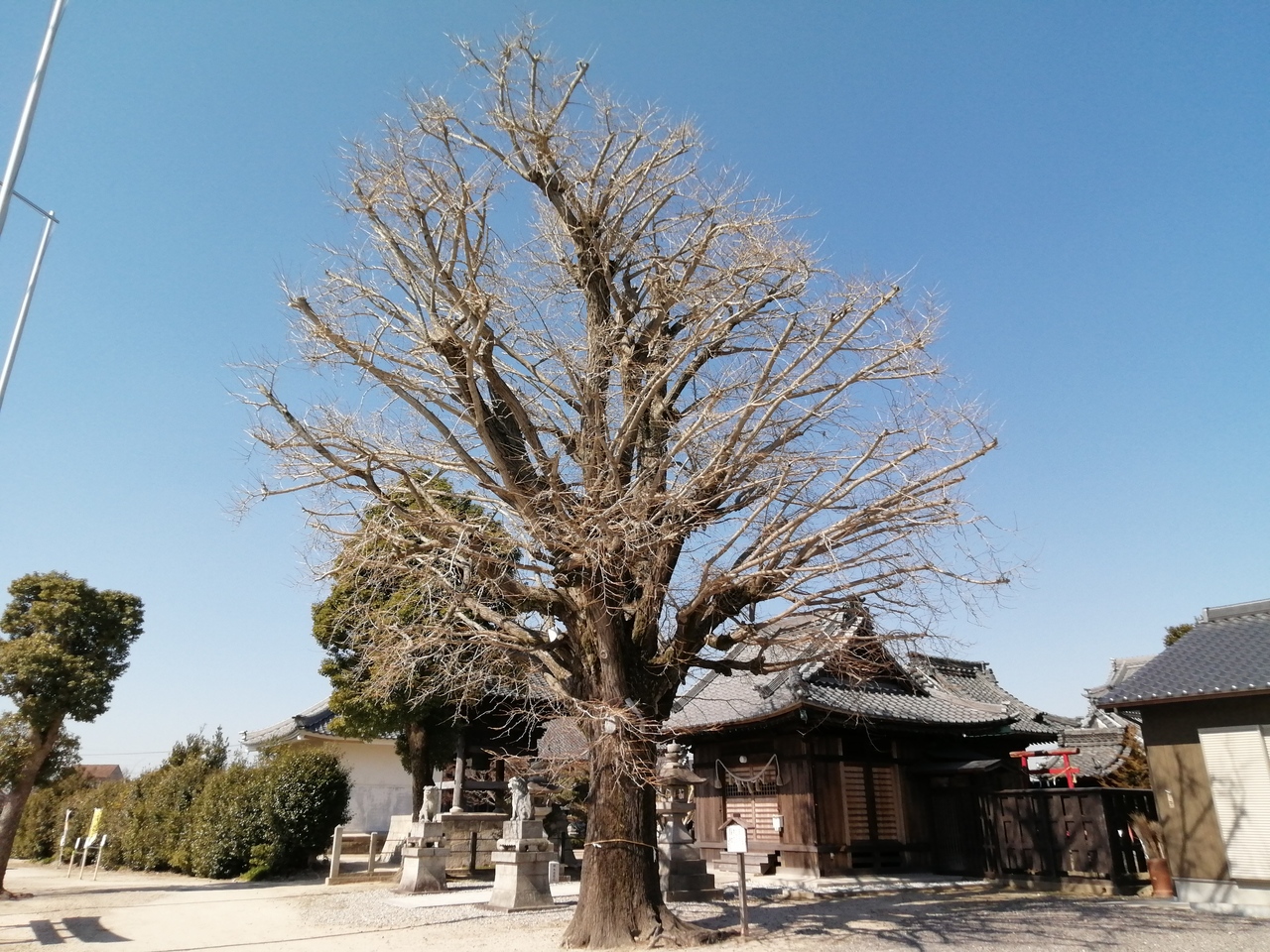 正法寺に隣接しているのか、はたまたその境内の一画にあるのかよくわからない小さな神社です。見どころは…かつて第77代法務大臣を務め、死刑執行に関し物議を醸し、選挙違反の疑いもある杉浦正健氏の生誕地碑…ではなく、「ふるさとの名木」に指定されている“大いちょう”の大木です。当然ですがこの時期は一枚も葉がありませんが、きっと秋には見事な紅葉を見せてくれると思います。またその頃に来たいと思います。