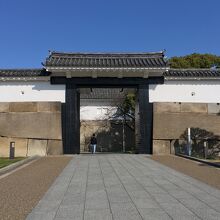 大阪城の南西側、NHK大阪放送局や大阪歴史博物館の前にあります。1628年に創建された高麗門形式の門で、幕末までは追手門とも称されていました。門を取り囲む土塀二棟とともに、重要文化財に指定されています。1848年に修復され、1956年には解体修理されました。ゆるい勾配の坂道の先に見える黒く重厚な門が印象的で、外堀からの眺めも良いです。