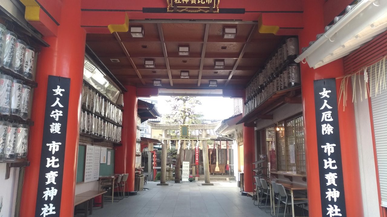 コンクリートで舗装された一見現代的な神社です。五条の住宅街の一角にある氏神様ですが、市比賣神社はその名の通り、祀られている神様がすべて女性(姫)という珍しい神社です。周りには仏教寺院が多く並ぶエリアなので、併せてお参りする方も多いようです。