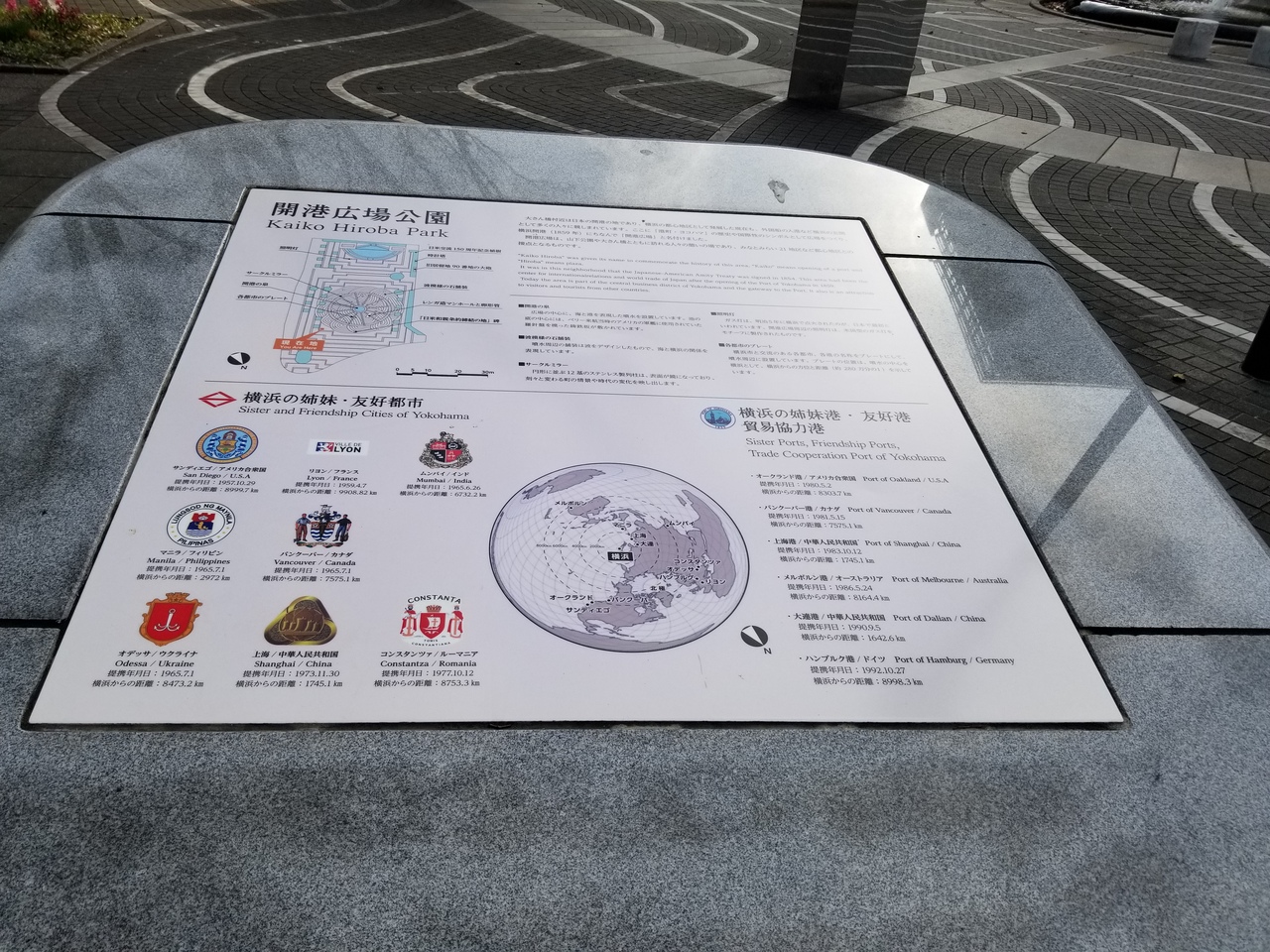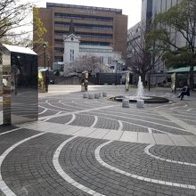 大さん橋と山下公園の通りが交差する角に位置する開港広場。