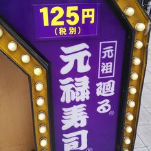 回転寿司の元祖、元禄寿司の堺東店です。細長い店舗で、楕円形のレーンの中に握り職人さんがいらっしゃいます。流れていないものも気軽に声をかけれます。マグロやサーモン、うなぎなどを頂きました。なかなかおいしかったです。