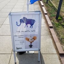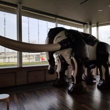 赤レンガ倉庫から山下公園に向かう途中にある象の鼻カフェ。中には大きなマンモスの像がある。それなりに人で混雑している。